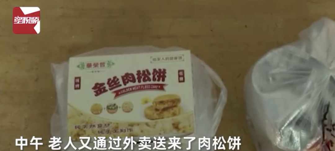 老人又通过外卖送来了一份肉松饼