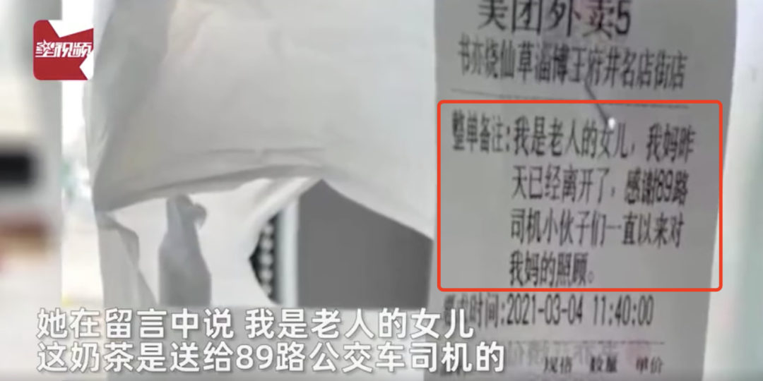 又替老人给公交司机们点了奶茶
