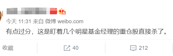 针对这种现象,有大V在微博上指出,有点过分了,这是盯着几个明星基金经理的重仓股直接杀了。