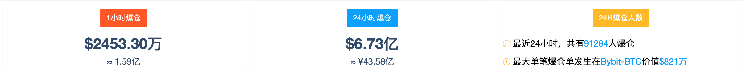 比特币家园网的数据显示,最近1小时,有近1.59亿(人民币,下同)的资金遭遇爆仓,过去24小时遭爆仓的金额则超过43亿元,爆仓人数超过91000人。