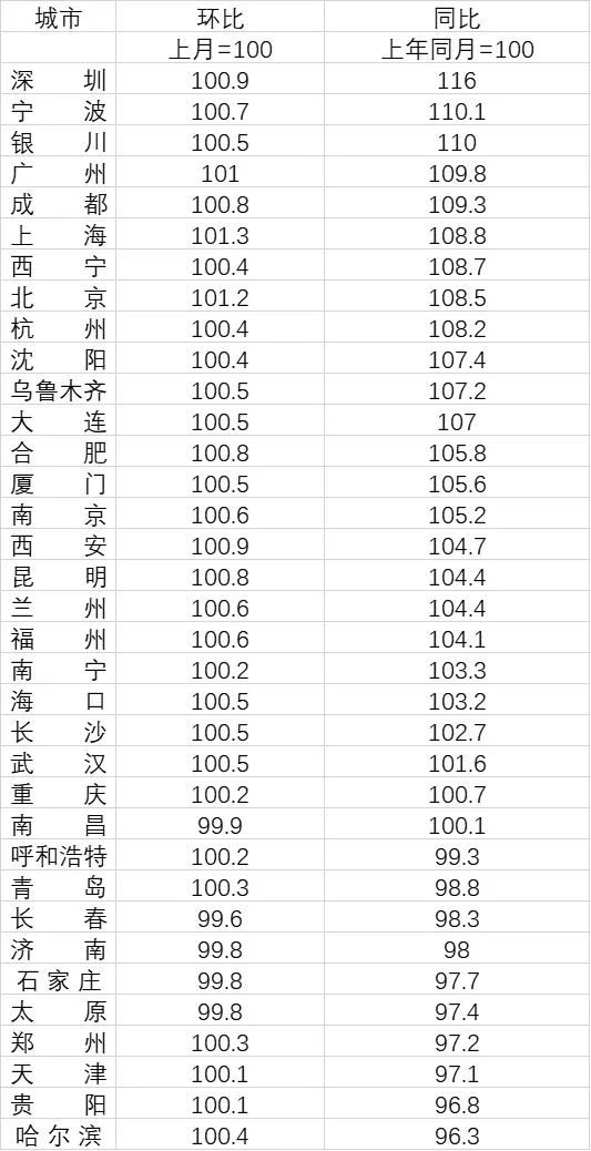 另一个计划单列市宁波以10.1%的同比涨幅,在35个重点城市中位居第二。位于西北的银川同比涨幅也达到了10%,涨幅位居前三。