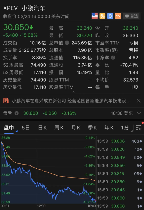 小鹏汽车跌超15%,理想汽车跌超13%,蔚来汽车跌超10%。
