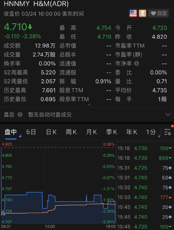 多家快时尚公司收跌