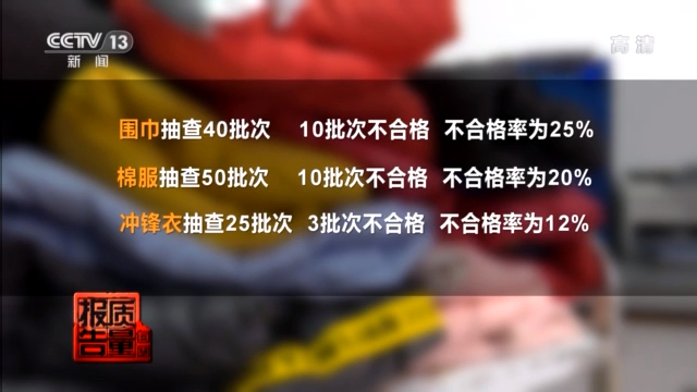 以次充好,羽绒服、围巾不合格率严重超标