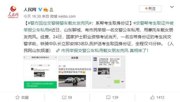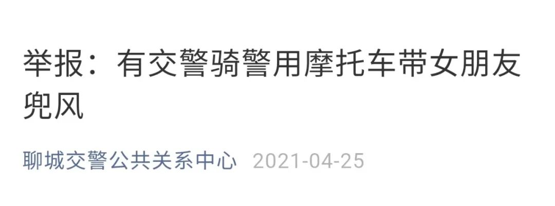 近日,有网友在“聊城交警公共关系中心”微信公众号留言举报一名交警公车私用,骑警用摩托车载女朋友兜风。